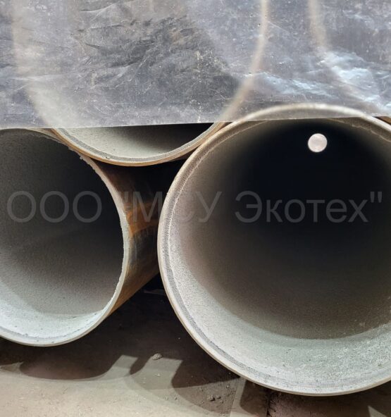 Внутреннее цементно-песчаное покрытие представляет собой антикоррозионное покрытие, наносимое методом центробежного набрызга (D150-D1400, толщина покрытия 3..15 мм) либо центрифугирования (D20-D130, толщина покрытия 0,5..2 мм).